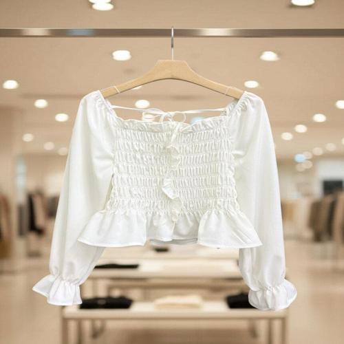 [오노마] ONM 바스트 스모크 밴딩 크롭 어깨셔링 프릴 블라우스 (S9872432)