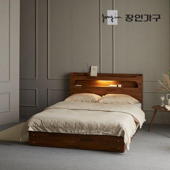 장인가구 플랫 베이직 LED 고무나무 원목수납침대 프레임Q