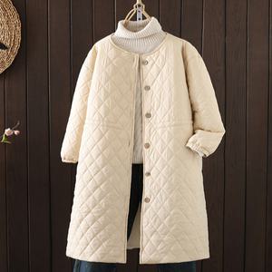 [드리다]여성 겨울 체크 카라 빅사이즈 누빔 롱 마이 자켓 40-50대 미시 중년여성 엄마옷 하객 출근 모임