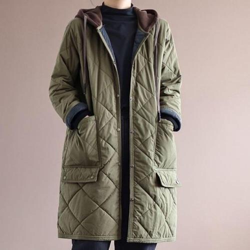 Titikong 여성 겨울 패딩 패션 후드집업 아가일 오버핏 누빔 패딩점퍼 두꺼운 볼륨감 데일리