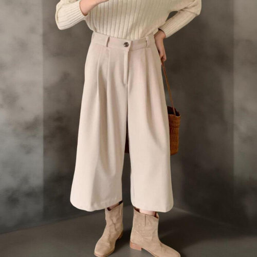 데일리앤 플린트 뒷밴딩 7부 울 모직 큐롯 팬츠 여자 와이드 핀턱 슬랙스 가을 겨울 바지