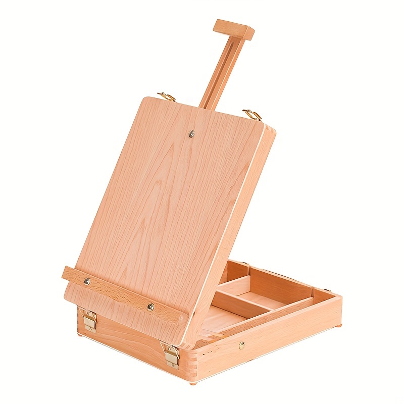 TEMU tbview 조절 가능한 목재 이젤 스케치박스 - 휴대용 미술 용품 보관함, 인체공학적 디자인의 천연 너도밤나무 테이블탑 이젤, 라이트 브라운/레드/블랙, 드로잉 & 스케칭용, 메탈 코너 보호기, 컴팩트한 정리함, 견고한 구조, 창의적인 전문가용