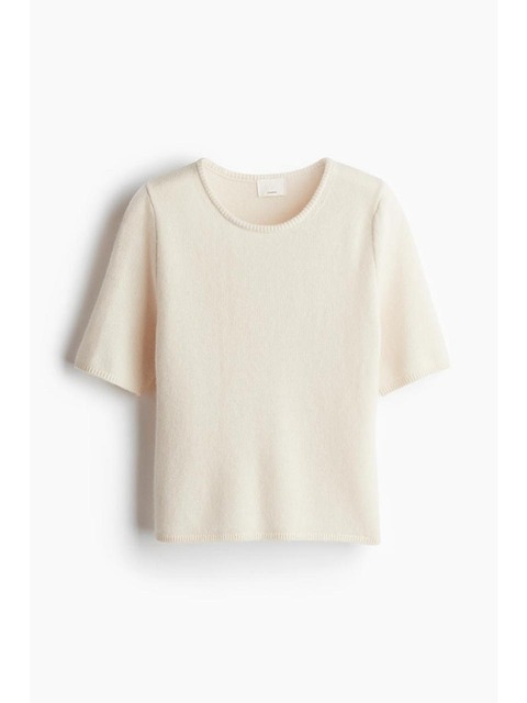 [에이치엔엠] 캐시미어 티셔츠 크림색 1239445003