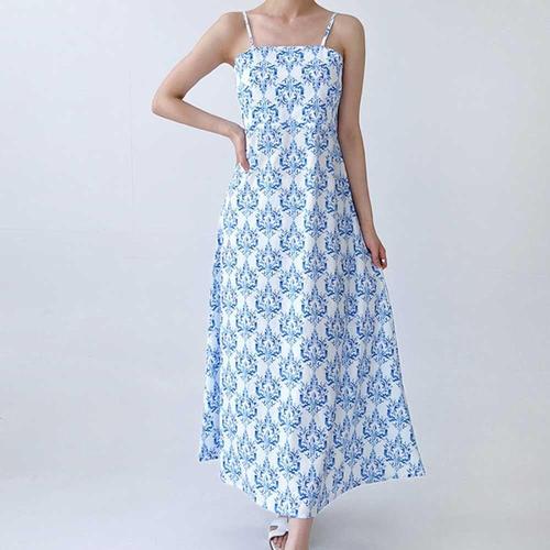 [모노무드]모노무드 뒷트임 백크로스 끈나시 롱원피스 여름 민소매 바캉스