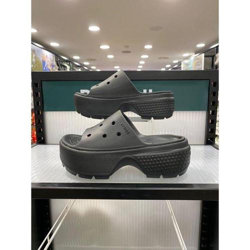 [크록스]여성 스톰프 통굽 키높이 슬라이드 슬리퍼 샌들 블랙 209346-001