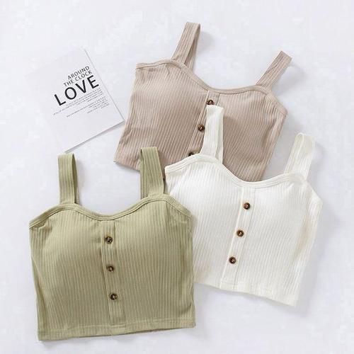 [에이치플러스몰]여성 캡 일체형 골지 단추 끈나시 크롭탑 캐주얼룩