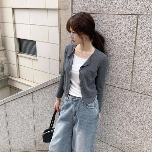 [옷자락] 여성용 데일리 나시 레이어드 트임 크롭 가디건