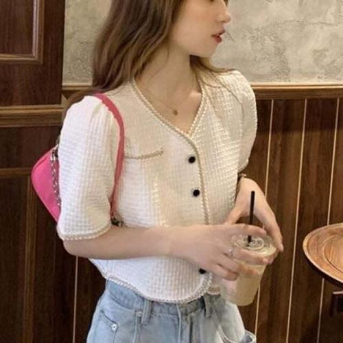 [셀럽하우스]크롭 MOJM2378 여름 여친룩 와플패턴 반팔 하객룩 가디건