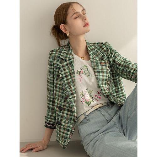 [르니앤맥코이]라이트 프린지 체크 크롭 자켓 ML06JK200HJY
