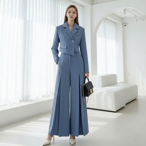 프롬 크롭 자켓 와이드 팬츠 슈트 세트