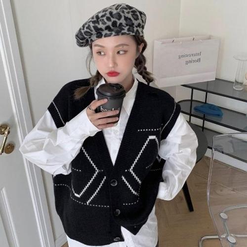 [엄지척]여성 유니크패턴 부드러운 겨울 크롭니트 조끼 가디건_19791075_667501