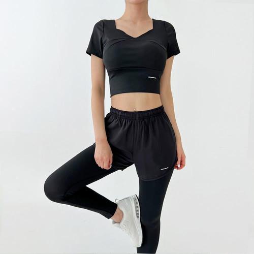 [다잇템]여성 크롭탑 하프 운동용 짧은팔 편한 세트