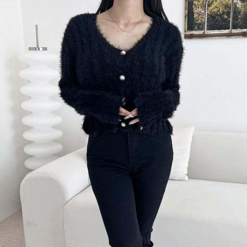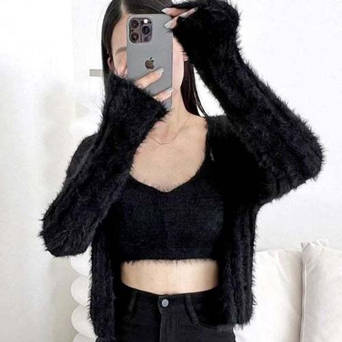 [셀럽하우스]유니크 VGQW7196 여자 페이크 앙고라 크롭탑 가디건 세트