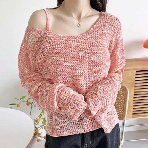 [엄지척]소프트 컬러 여름용 나시 크롭탑 그물 니트웨어 세트_19681389_667501
