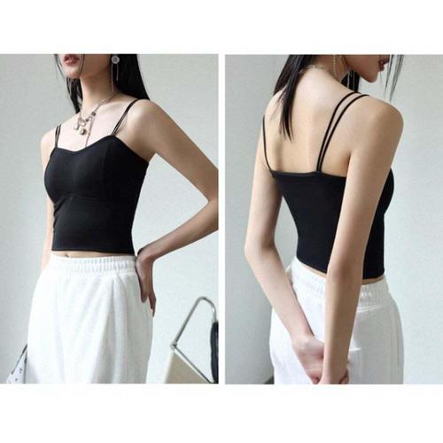[셀럽하우스]심플 KYIK1895 무지 디자인 여성 끈 크롭탑 이너 민소내 티셔츠