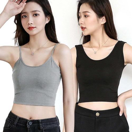 [셀럽하우스]데일리 XBUJ9198 편한 예쁜 이너 더블끈 캡내장 크롭탑 나시탑