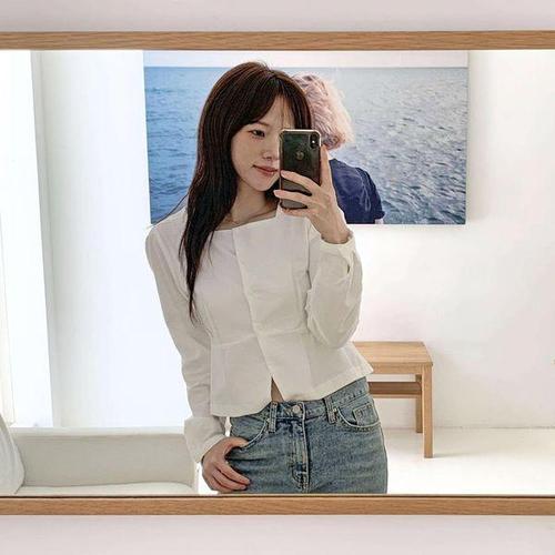 옷자락 / 여자 가을하객룩 프릴 셔링 슬림핏 크롭 긴팔 셔츠