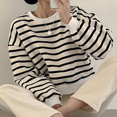 [셀러허브_여성트랜드패션]ONM 맨투맨 패션 단가라 1P 크롭 간절기 여성 티셔