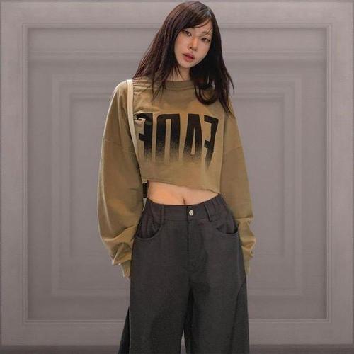 엘케이트 여성 크롭 맨투맨 루즈핏 스티치 스웨트 긴팔 티셔츠 LFL002