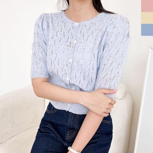 여성 반팔 펀칭 크롭 니트 가디건 1P 시원한 카디건