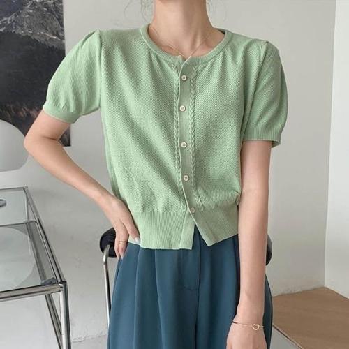 [엄지척]단정한 반팔 크롭 여자 여름 가디건 세미 라운드넥_19874296_667501