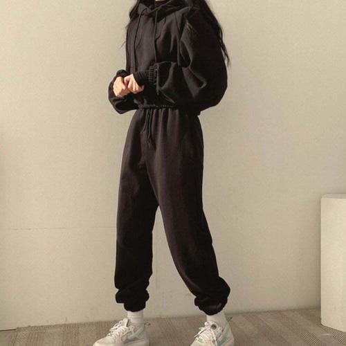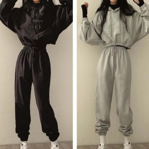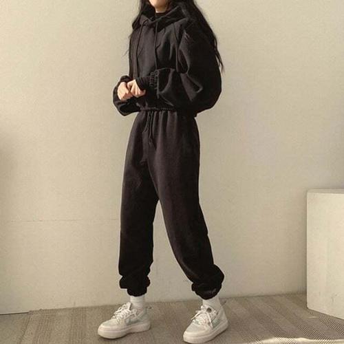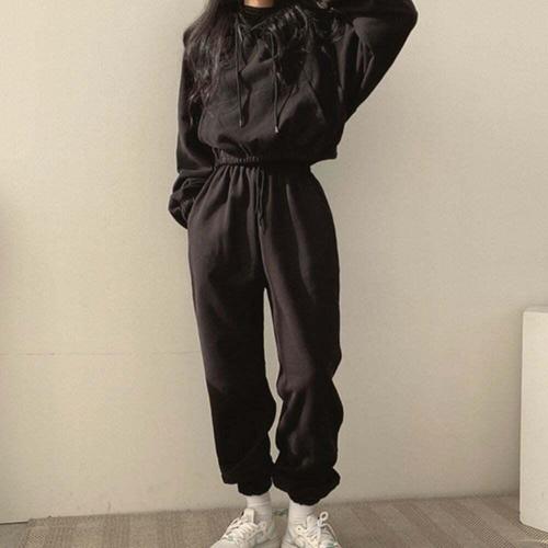 [셀럽하우스]베이직 LLOJ1098 러블리 여자 크롭후드 조거팬츠 셋업