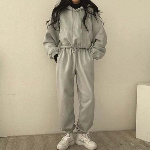 [셀럽하우스]데일리 FGFL2348 조거팬츠 데일리 크롭 후드 세트 여성 추리닝