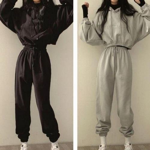 [셀러허브_여성트랜드패션]여자 데일리 추리닝 크롭 후드 세트 데일리 조거팬츠