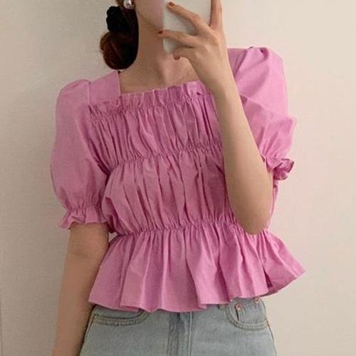 [엄지척]셔링 크롭 여성 여름 퍼프블라우스 블라우스 스퀘어넥_19645653_667501