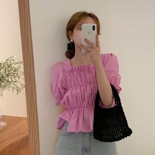[엄지척]반팔블라우스 스퀘어넥 크롭 블라우스 셔링 여성 퍼프_19646623_667501