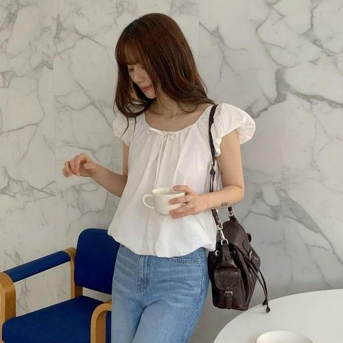 [엄지척]스퀘어넥 크롭 셔링 블라우스 퍼프소매 여친룩_19651207_667501