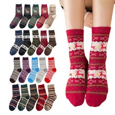 미모양 예쁜 여성 크리스마스 산타 캐릭터 양말 여자 골지 중목양말 5켤레 세트