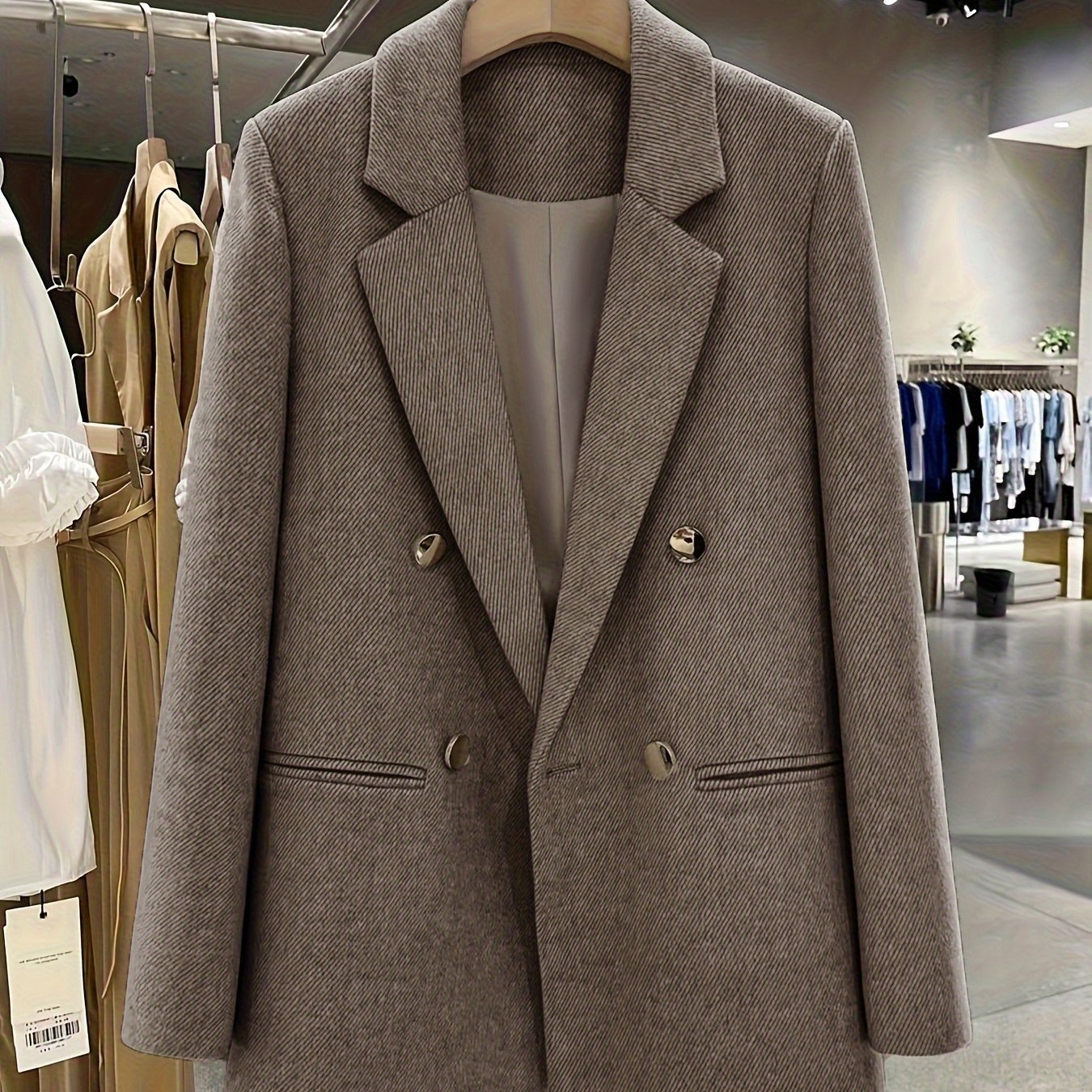 TEMU 라운지핏의 라이트 퍼플-그레이 텍스처 더블 브레스트 코트, 여성 직장인에게 적합