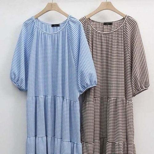 빅사이즈 자체제작 여름 7부 소매 ALL 프릴 셔링 롱 원피스 박스 루즈핏 77, 88, 99
