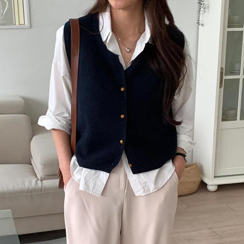 [샵앤][샵앤] 국산 여성 라운드 단추 니트 조끼 21DS-WVS-4893-그레이