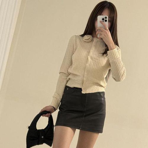[모노무드]모노무드 은플레이스 반팔 밴딩 가디건 클럽원피스 미니스커트 크롭 니트