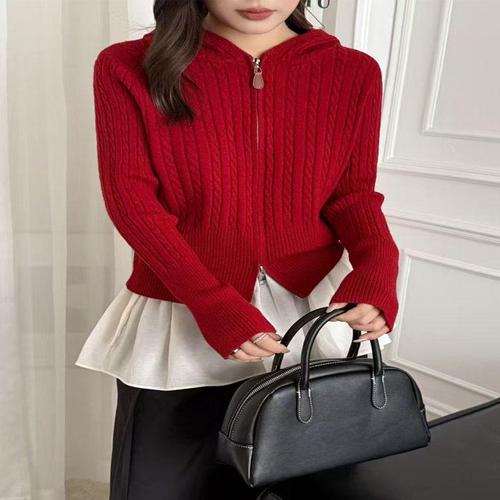 [하젤]클레오 꽈배기 집업 후드 울니트 가디건_S4497