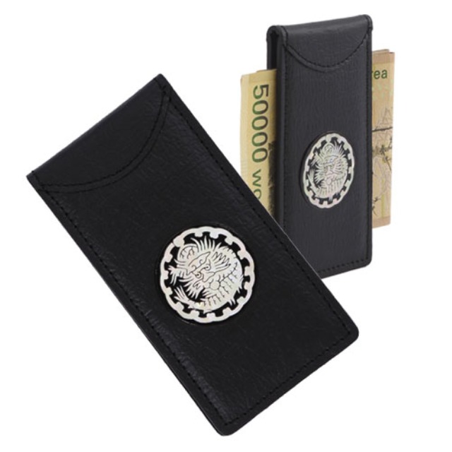 리얼 소가죽 3단 진주펄 고정클립 카드 동전 중지갑