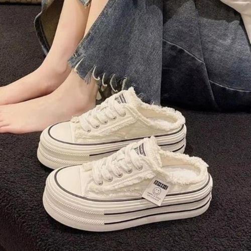 여성 뮬 슬리퍼 여름 샌들 통굽 블로퍼 스니커즈 운동화 가벼운 발편한 슬립온 사무실 키높이 캔버스 로퍼