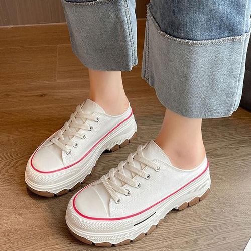 [옷자락]여자 캐주얼 키높이 캔버스화 뮬 운동화 스니커즈