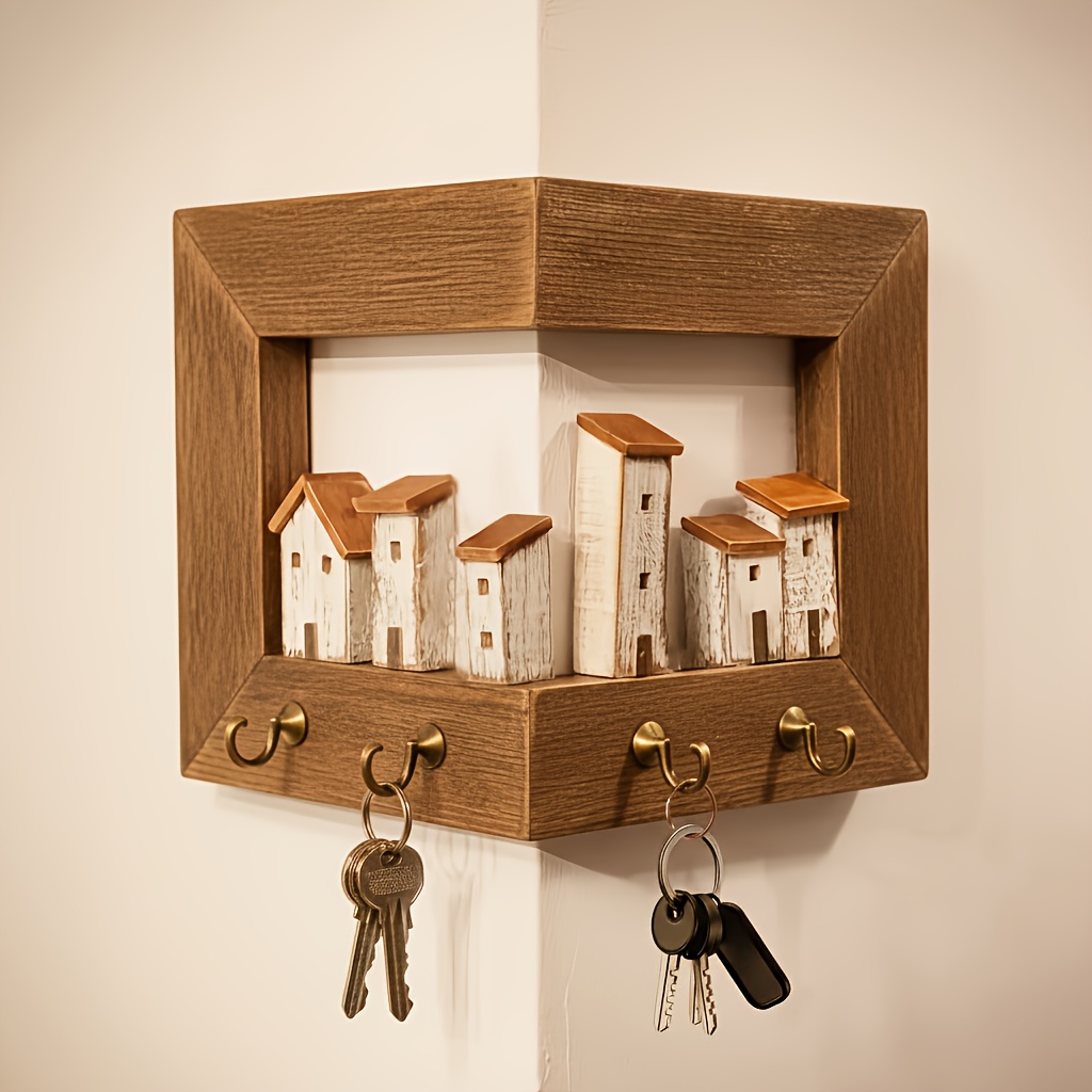 TEMU 4개의 고리와 함께 있는 소박한 스타일의 벽걸이형 키 랙. 침실, 가정 벽에 보관하고 예술 및 공예품 정리에 적합합니다. 이 나무 현관 수납 랙은 키 걸이로 사용됩니다.