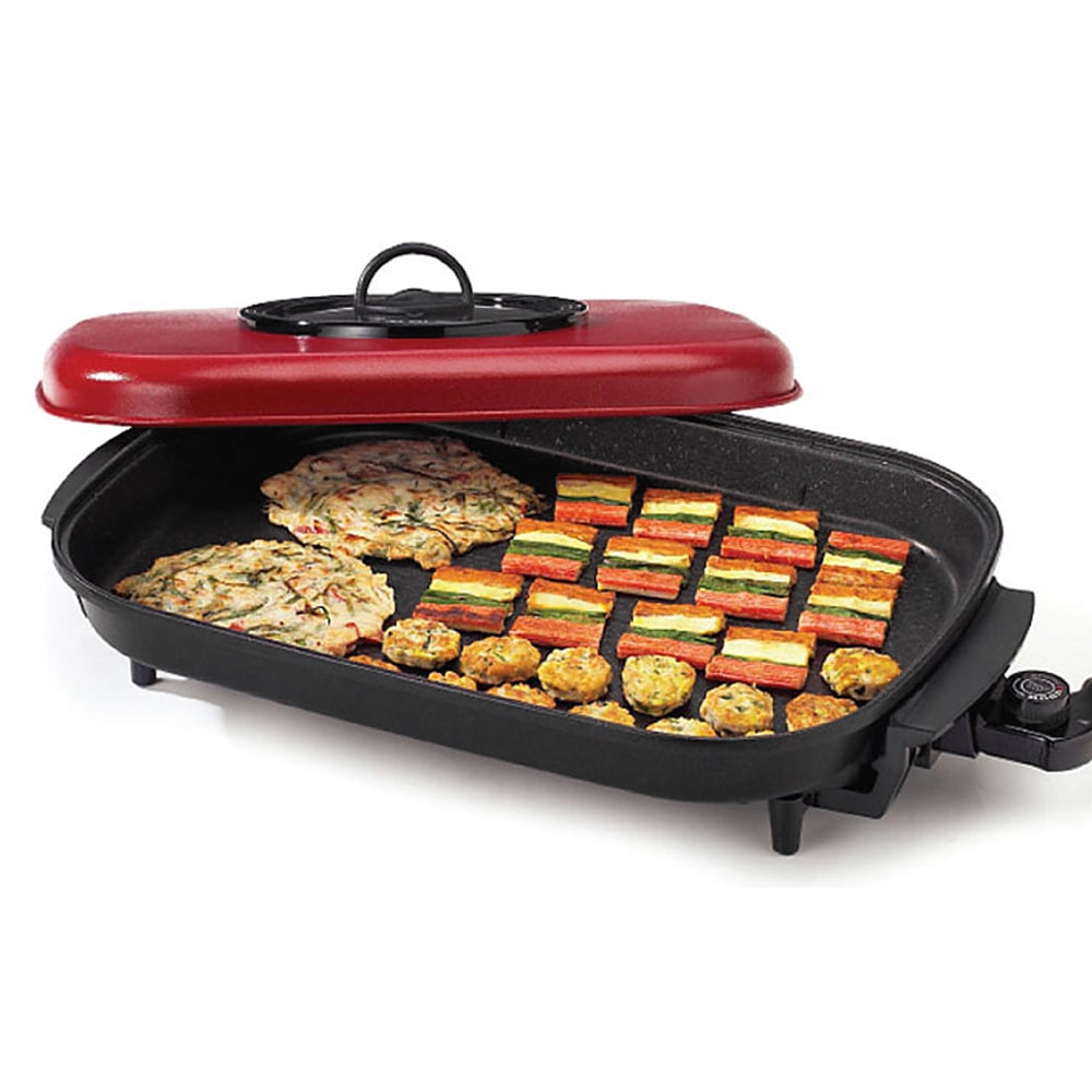 키친아트 퀸 골드마블 사각 전기후라이팬 (빨간뚜껑)