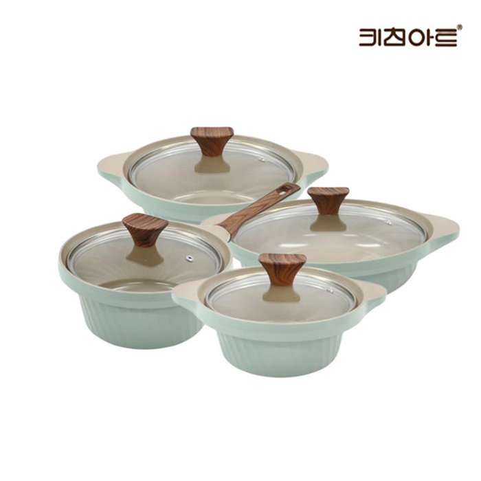 키친아트 베이직 인덕션냄비 세라믹코팅 냄비세트 4종A 편18+양20+24+전22