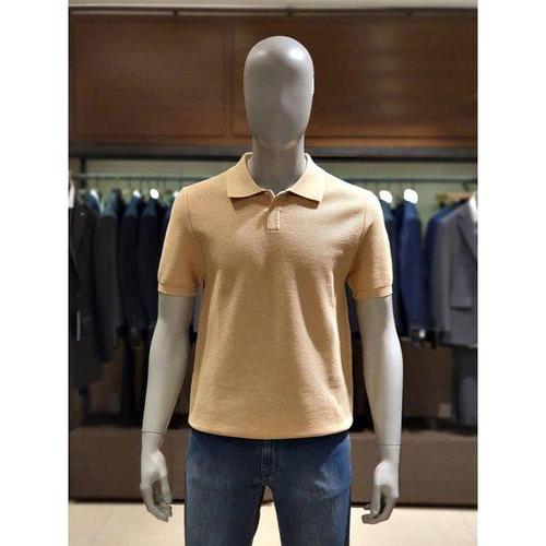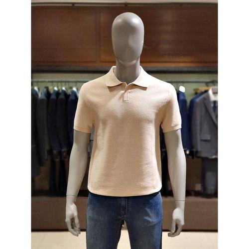 갤러리아 킨록 C/P 조직 반팔 버튼 카라 니트 라이트베이지 (THY96)