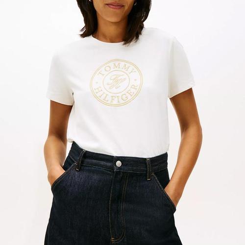 [해외배송] 타미 여성 엠브로이더 메돌이언 로고 티셔츠 Ivory