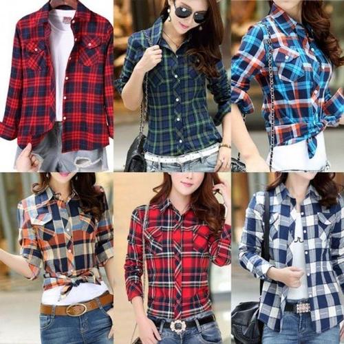 레이디스 탑 체크패턴 셔츠 타이트핏이지 블라우스 WFJIUDC