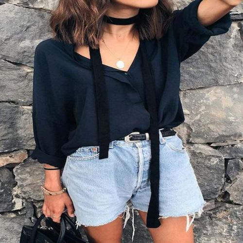 [셀럽하우스]슬림 GXOA0761 롱타이 스카프 티셔츠 블라우스 리본 스타일링