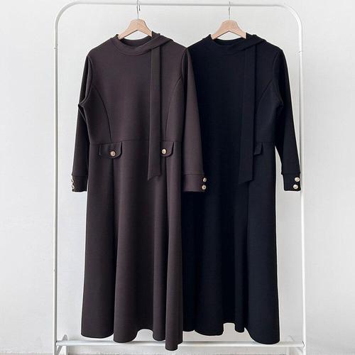 [옷자락]여성용 긴 원피스 스카프 타이 금장 버튼 절개 가을 하객룩