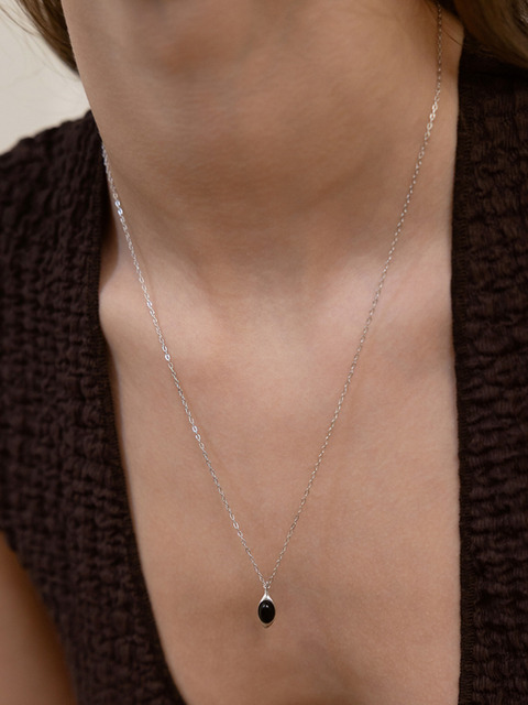 [타티아나] (실버925) 오벌 스톤 팬던트 롱 목걸이 NZ2504 오닉스
