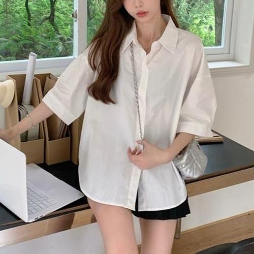 [엄지척]여성 루즈핏 가오리핏 셔츠 심플 반팔 블라우스_19650737_667501